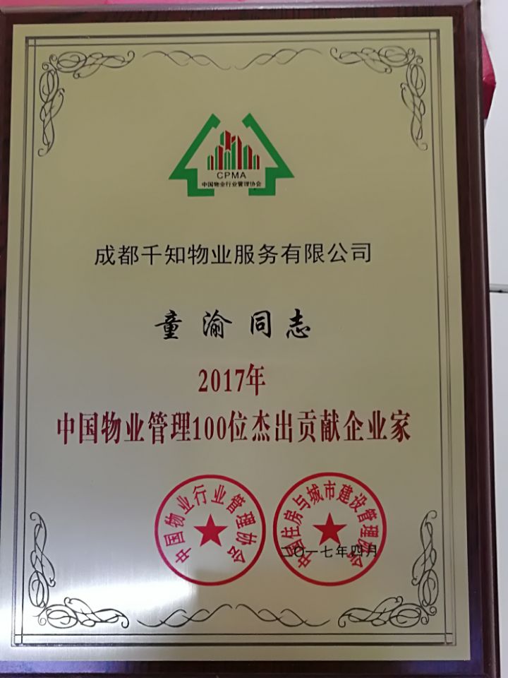 中国物业管理100位杰出贡献企业家