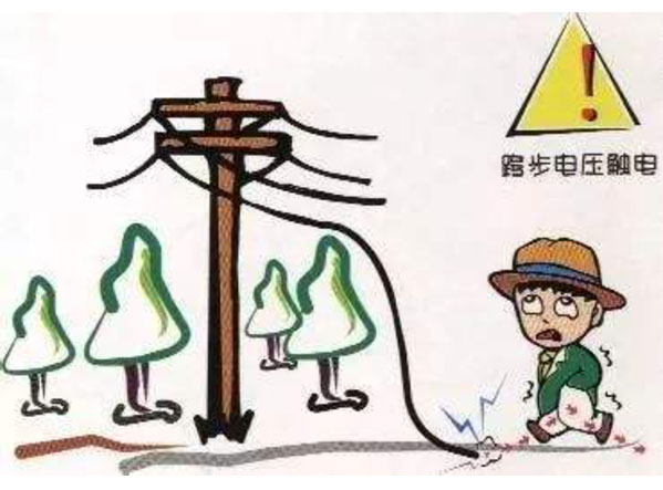所有用电户应及时检查自己产范围内的用电线路,若有老化现象应及时请专业人员更换;注意检查漏电保护开关等电器元件是否正常运行,以及零线或接地线有没有脱落的情况。如遇电线恰巧断落在离自己很近的地面上,首先不要惊慌,更不能撒腿就跑,应该单腿跳跃或双脚并拢跳着离开现场8米以外,以免跨步电压伤人。